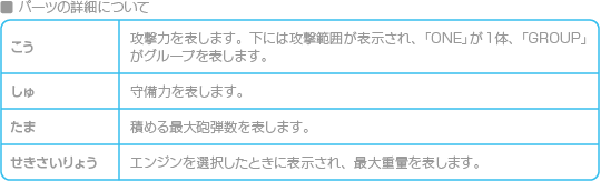 「はそん」したり「たいは」した戦車のパーツを直すことができます。 |