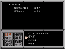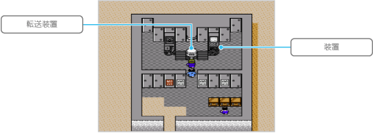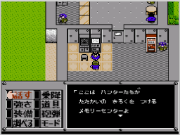 行ったことがある町の転送センターへ、瞬時に移動できます。装置の前で通常コマンド「調べる」を選び、行き先を決めて転送装置に乗ってください。 |