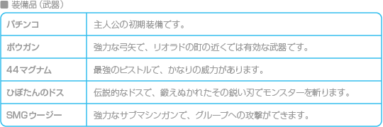 人間用アイテムは「装備品」と「道具(人間用)」に分けることができます。キャラクターは、「装備品」と「道具(人間用)」のアイテムをそれぞれ8つずつ持つことができます。
