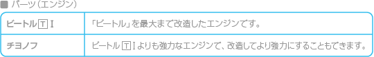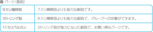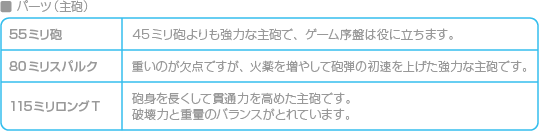 戦車用アイテムは「パーツ」と「道具(戦車用)」に分けることができます。戦車は、「パーツ」と「道具(戦車用)」のアイテムをそれぞれ8つずつ持つことができます。