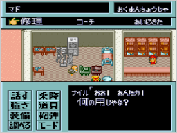 壊れたパーツは、「破損」の場合はメカニックや修理レベルの高い仲間がアイテムの「修理キット」で直すことができますが、「大破」の場合は修理屋に行かないと直すことができません。 マドの町にいる「ナイル」に話しかけて「コーチ」を選ぶと修理技術を教えてもらうことができ、修理レベルを上げられます。 |