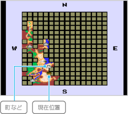 アイテムの「BSコントローラ」は、パーティが歩いた場所を自動的に記録し、使うとマップで現在位置や町などを確認することができます。