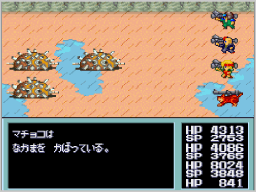 | 冒険の途中では、戦車が通れない場所に行かなければならないこともあります。戦車に乗らずに行動するときは、パーティに肉弾戦が得意なソルジャーがいると、戦闘でとても頼りになります。肉弾戦が苦手なメカニックを守ってあげることもできます。 | ![]() |