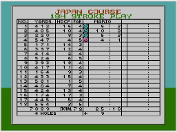 各コースの情報が表示され、「STROKE PLAY」モードの場合はこれまでの打数を、「MATCH PLAY」モードの場合はこれまでの勝敗を見ることができます。 |