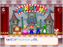 | 「自分たちの夢をつめこんだ自分たちの国をつくろう!」マリオたちは夢を語りあいました。 そして、みんなが力をあわせてようやくつくりあげたその国を「マリオランド」と名づけようとしました。 しかし、突然ワリオが言いました。「この国は、スーパースターであるワガハイの名前をつけて、"ワリオランド"にするべきなのだ!」 それを聞いたみんなはケンカをはじめてしまいました。「"ピーチランド"がいいわ!」「いや、ボクの名前が一番いい!」キノピオもすっかりお手上げです。 そんなとき「マリオランド」がクッパにおそわれてしまったのです!!これは大事件です!!ケンカしている場合じゃありません。 キノピオが言いました。「それではクッパをたおしたスーパースターの名前をつけることにしましょう!」 ……こうしてマリオたちは、クッパをたおすため新たな冒険へと旅立つのでした。 |