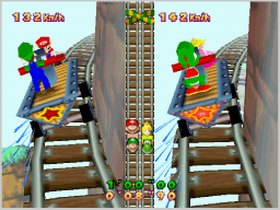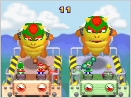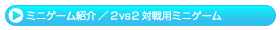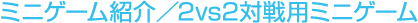 2人対2人で戦います。2人が交互にタイミングよく操作するとうまくいくゲームが多いため、息を合わせて操作することが大切です。