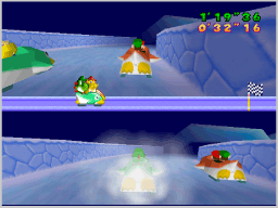 の上でスピードアップ、下でスピードダウン、左右で移動です。チームに分かれてボブスレーに乗り、先にゴールしたチームの勝利です。