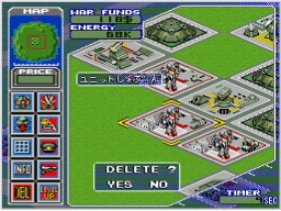 ミサイル、バトラー、対空ミサイルは「ユニットきょうか」を行うことでレベルアップして性能が上がります。コマンドを選んだあと、強化したいユニットを選んで ※ミサイルの強化には40$、バトラーは45$、対空ミサイルは50$の戦費が必要です。 |