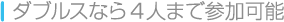 | ダブルスをプレイするときは、最大4人のプレイヤーが参加できます。ペア同士で息の合ったコンビネーションを見せて、勝利をめざしてください。1人でプレイする場合でも、ほかのキャラクターをコンピュータに操作してもらうことで、ダブルスをプレイできます。 | ![]() |