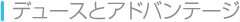 スコアが3ポイントずつ(40対40)の同点となった状態のことを、デュース(DEUCE)と呼びます。ここから1ポイント取るとアドバンテージ(ゲーム画面では「Adv.」と表示されます)となり、続けてもう1ポイント取るとゲームになります。ただし、アドバンテージの状態で相手にポイントを取られた場合は、ふたたびデュースとなります。 |