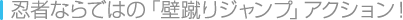 このゲーム最大のウリといえるのが「壁蹴りジャンプ」。壁と壁の間を飛び移ることによって、看板や崖の上など、普通に移動するだけではたどり着けない場所に行くことができます。 ![]() |