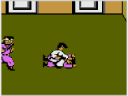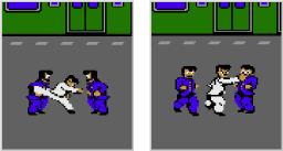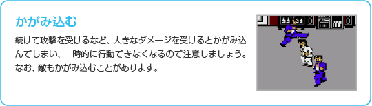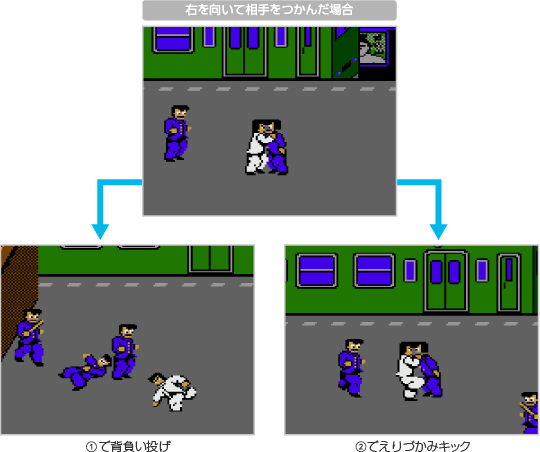 を押すと右側を攻撃します。なお、正面を攻撃するときはパンチ、背後を攻撃するときはキックを出します。