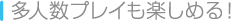 「たいこうじあい」と「くらぶかつどう」では、多人数プレイが楽しめます。家族や友だちと対戦して、ワイワイ盛り上がりましょう。 ![]() |