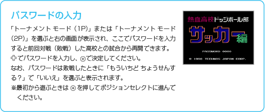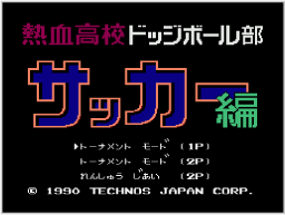 Wii本体の電源を入れたら、Wiiメニュー画面で『熱血高校ドッジボール部 サッカー編』のチャンネルを選びましょう。タイトル画面が表示されます。 |