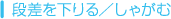 下を押すと、一段下に下ります。なお、地面などの段差以外の場所では、その場にしゃがみます。