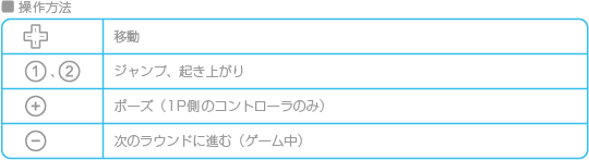 「GAME A」は初心者向け、「GAME B」は上級者向けになっています。 2人でプレイするときは「2 PLAYER GAME A」または「2 PLAYER GAME B」を選んでください。1Pからプレイし、ミスするともう一方の番になります。 |