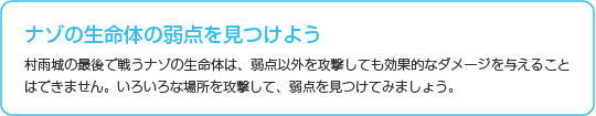 城内で戦うボスはとても強力です。 現在の術に不足を感じるときは、ほかの部屋で術を集めてから挑みましょう。 ![]() |