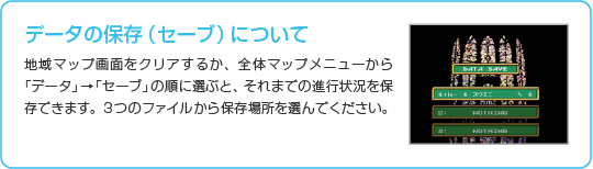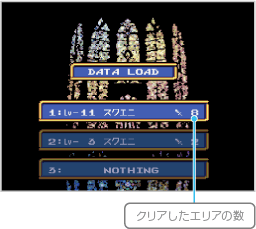 続きからゲームをプレイします。3つのセーブデータから読み込むものを選んでください。 |