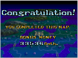 ボスを倒すと勝ちとなり、その地域を解放できるとともに、お金が手に入ります。帝国軍ユニットが反乱軍の本拠地にたどり着き、制圧されると負けです。勝敗が決まると、全体マップ画面にもどります。 |