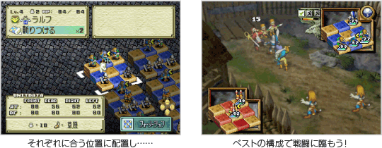 ユニットに所属するキャラクターたちは、3×3のマスに自由に配置できます。「前線での攻撃を得意とする戦士」や「後方で味方の援護を得意とする僧侶」など、それぞれのキャラクターには得意な位置があるので、うまく配置して戦闘を有利に展開してみてください。 ![]() |