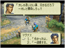 | 『オウガバトル64』は1999年7月14日に発売されたシミュレーションRPGで、全8章から成る「オウガバトルサーガ」シリーズの第6章にあたります。 プレイヤーはリアルタイムで時間が経過するフィールドで、部隊を指揮してゲームを進めていきます。自軍が行動している間も同時に敵軍は行動しているので、実際の戦いを指揮するかのようにプレイできます。 |