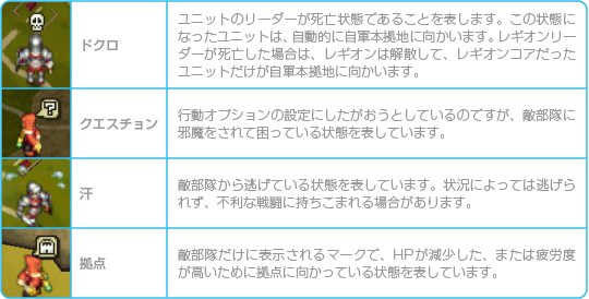 ユニットの状態によって、以下のような感情マークが表示されることがあります。 |