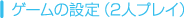2人で遊ぶときは、「LV.(レベル)/ゲームの難易度」をそれぞれのプレイヤーが設定します。また、「スコアアタック」では「HANDICAP(ハンディキャップ)」で、あらかじめそのプレイヤーに加算するスコアを決めることもできます。各項目を選び、