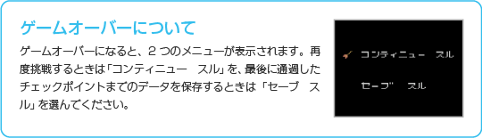 セーブデータがあるデータを選ぶと続きからプレイできます。 |