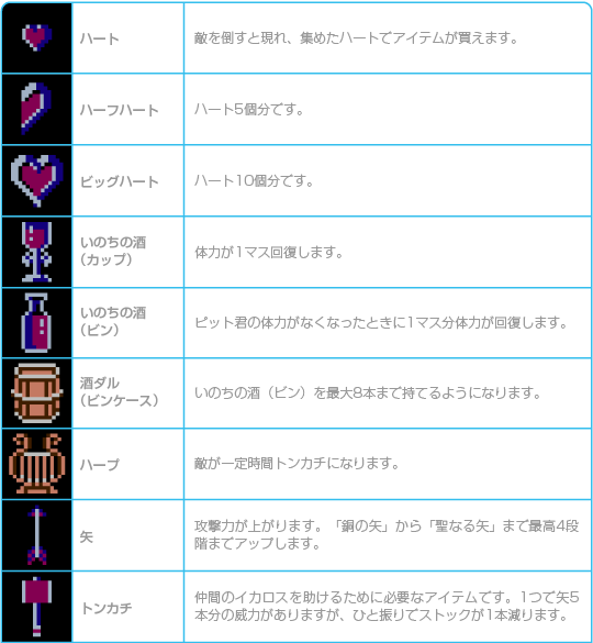 『光神話 パルテナの鏡』に登場するアイテムの一部を紹介します。