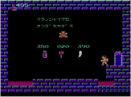 ハートを使ってアイテムを買うことができます。場所によって商品は異なりますが、「いのちの酒」「トンカチ」「えんぴつ」などを取りそろえています。 |