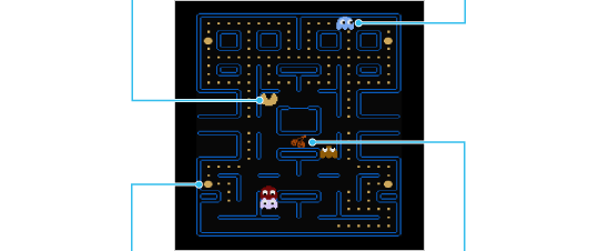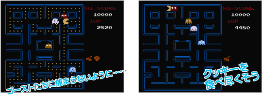 狭いようで広い、シンプルなようで奧が深い、そんな迷路が『パックマン』の舞台なのです。 |