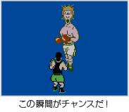 相手のパンチをスウェーでよけた直後にパンチを当てると、相手はしばらくびっくりした状態になります。この間はまったく無防備になるため、思う存分パンチを当てることができます。ぜひねらってみましょう。 |