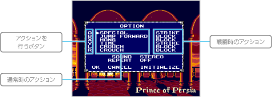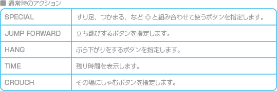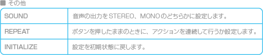 各アクションごとのボタンの割り当てや、音声の出力方法の変更などができます。 ![]() ![]() ![]() ![]() |