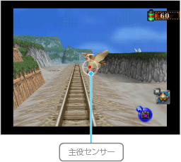 を押している間はカメラを構えます。カメラ構え中は画面の中心に主役センサーが表示され、ポケモンが画面の中心に入ると、赤く光ります。