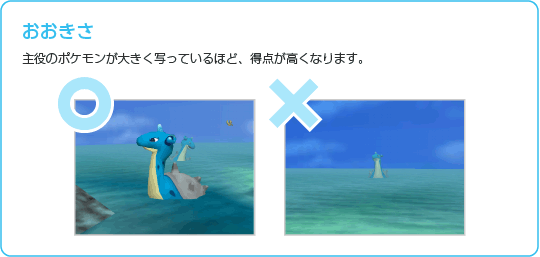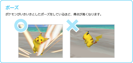 オーキド・チェックでは、「はかせマーク」をつけた写真を1枚ずつ採点してもらうことができます。採点をスキップしたいときは ※以前チェックしてもらった同じポケモンの写真よりも今回の方が得点が高い場合、前の写真は消えてしまいます。また、今回の方が得点が低い場合は、どちらをポケモンレポートに残すか、選ぶことができます。