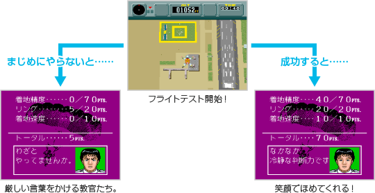 講習にはそれぞれ担当の教官がつき、プレイヤーのフライトを採点してくれます。また、種目の説明をしてくれたり、アドバイスもくれるので、彼らの力を借りながらライセンス取得をめざしてください。 ![]() ![]()