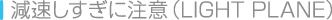 | 飛行中に出力(スピード)を急激に落とすと、失速状態となり、機体を水平に保っていても墜落する可能性があります。減速するときは、出力の落としすぎに注意してください。接地する直前に出力を落とし、接地後にブレーキを踏むとうまく着地できます。 | ![]() |