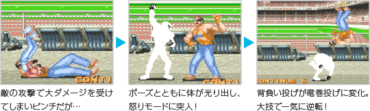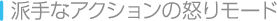 敵から一定量のダメージを受けると、「怒りモード」になります。怒りモードになると体が光り、一定時間攻撃されてもダメージを受けなくなります。攻撃力も上がり、一部の攻撃が変化します。 ![]() |