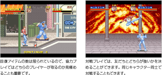 1人では苦戦するステージでも、協力プレイで進めば敵を倒しやすくなります。また、対戦するモードもあります。 ![]() |