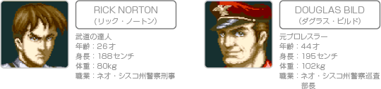 舞台は、架空の街、ネオ・シスコ。ここ数年、この街を中心に「ジーカス」と呼ばれる新型の覚醒剤が蔓延していた。ジーカスの出現によって街は荒廃の一途をたどっていったが、警察の必死の捜査にもかかわらず覚醒剤密売組織の正体は謎につつまれ、ネオ・シスコ州警察は苦渋をなめる日々が続いた。 そんな時、駆け出しルポライターのマリアは、組織の正体が謎の格闘家キンターク率いる組織団体ジョウカルであることをつきとめ、ジーカスが実際に取り引きされる現場をビデオ・テープに収めることに成功した。それを知ったジョウカルはマリアを誘拐、ビデオ・テープを奪おうとしたものの、マリアの機転によってテープはすでにネオ・シスコ州警察で刑事を勤める兄・リックの手に渡った後だった。 ジョウカルからマリアを人質にテープの受け渡しを要求され、単身マリアの救出に向かおうとするリック。そんな彼の目の前にひとりの男が立ちはだかった。ネオ・シスコ州警察巡査部長・ビルド。リックの先輩であると同時に、2人が幼い頃から彼らを見守ってきたビルドもまた、マリア救出に赴くことを決意したのであった。 こうして、自分の地位をかなぐり捨てた2人の追跡行が始まった。 |