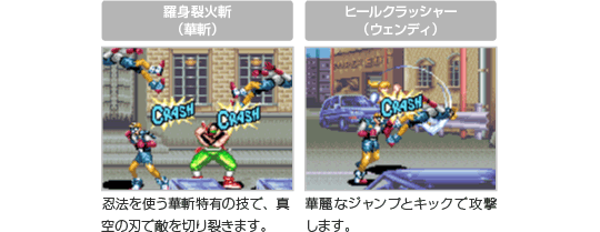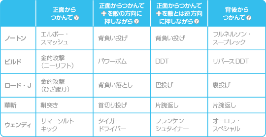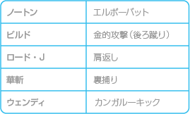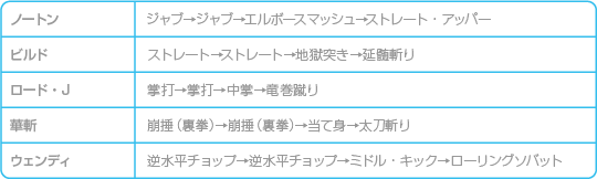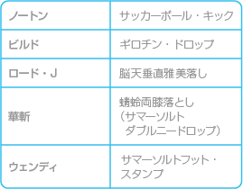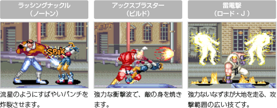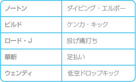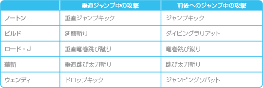 各キャラクターの攻撃方法は以下のとおりです。 |