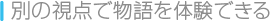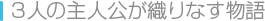 3つのシナリオは、すべて同じ世界・同じ時間で繰り広げられます。ある主人公の行動が、別の主人公のイベントに影響を与えることもあり、さまざまな角度から物語を体験できます。 |