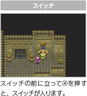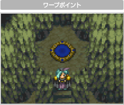 一部のダンジョンなどには、ワープポイントと呼ばれる場所があります。ワープポイントに重なると、別の場所にあるワープポイントに移動します。 |