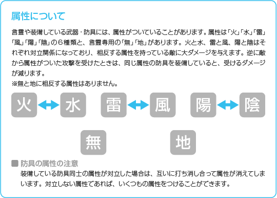 基本的な言霊をいくつか紹介します。 ![]() ※印は各属性の基本言霊です。 |