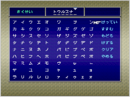 メニュー画面で「さくせい」を選ぶと、6文字以内で言霊を作ることができます。1文字ずつ順番に入力し、言霊ができたら「けってい」を選んでください。入力した文字によって、属性や威力、効果範囲、消費MPが決まります。 |