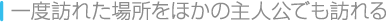 | ある主人公で訪れた場所を、ほかの主人公で訪れると新しい発見ができることがあります。特にジェイドの宝箱は、特定の主人公でのみ開けることができます。開けられなかった宝箱がある場合は、ほかの主人公で訪れてみてください。 | ![]() |