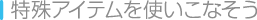 高いところにある足場に上ったり、大きな建物を越えたいときは、特殊アイテムの出番です。武器の代わりに装備して、先に進むための足場などを作りましょう。 ![]() |