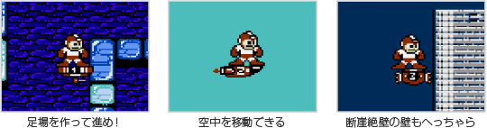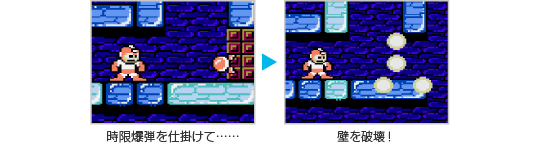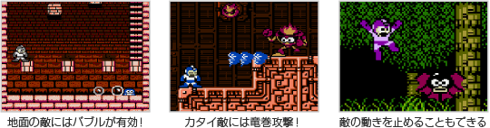 ロックマンの戦う相手は、8体のボスと彼らを率いる悪の科学者Dr.ワイリー。ボスによって動きや攻撃方法が異なるので、しっかり対策を立てて戦いましょう。 ![]() |