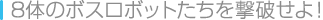 各ステージには、強力なボスロボットたちが待ち受けています。 ラッシュと協力して撃破し、世界に平和を取り戻しましょう。 ![]() ![]() |