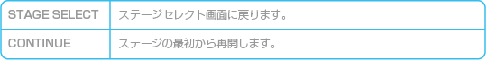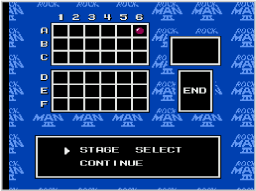 ロックマンの残り数が0のときにミスをするとゲームオーバーです。以下のメニューが表示されるので、 |